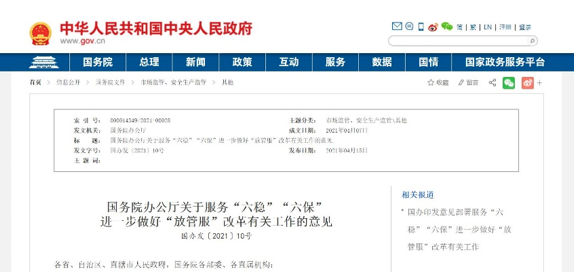 點(diǎn)擊查看《關(guān)于服務(wù)“六穩(wěn)”“六?!边M(jìn)一步做好“放管服”改革有關(guān)工作的意見》